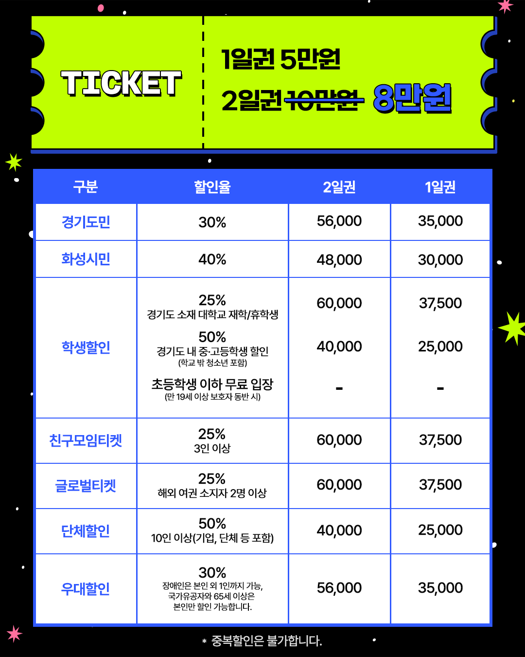 - 정가: 1일권 50,000원, 2일권 80,000원