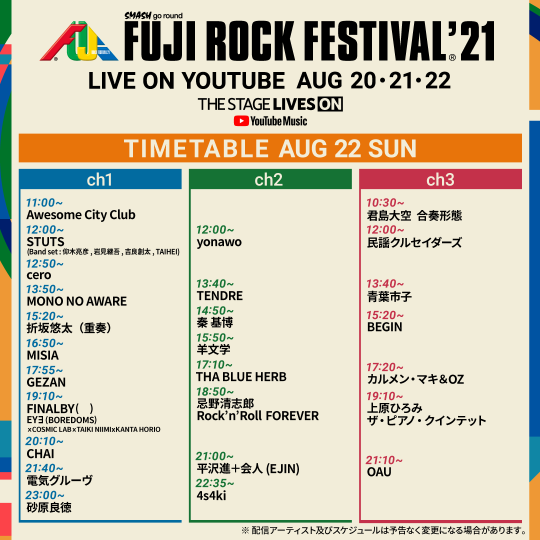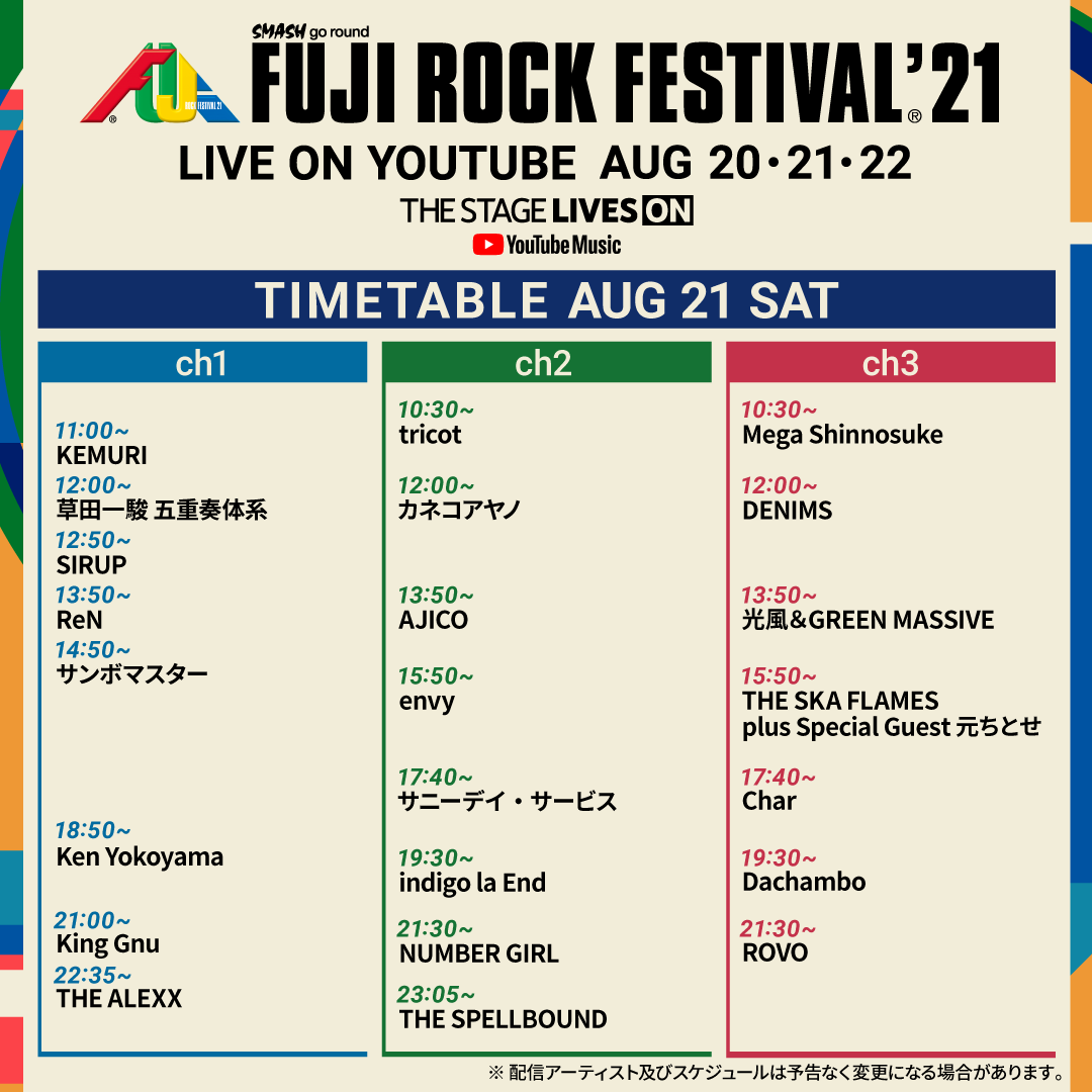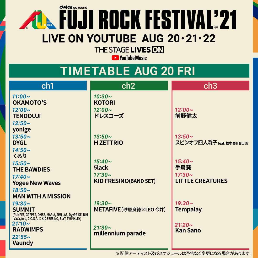 후지록페스티벌 2021 유튜브 생중계 타임테이블