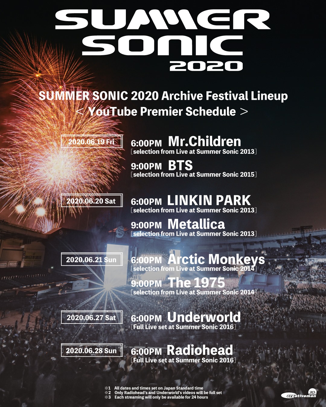 역대 섬머소닉 헤드라이너의 공연실황이 2주동안 섬머소닉 유튜브 채널에서 공개됩니다.