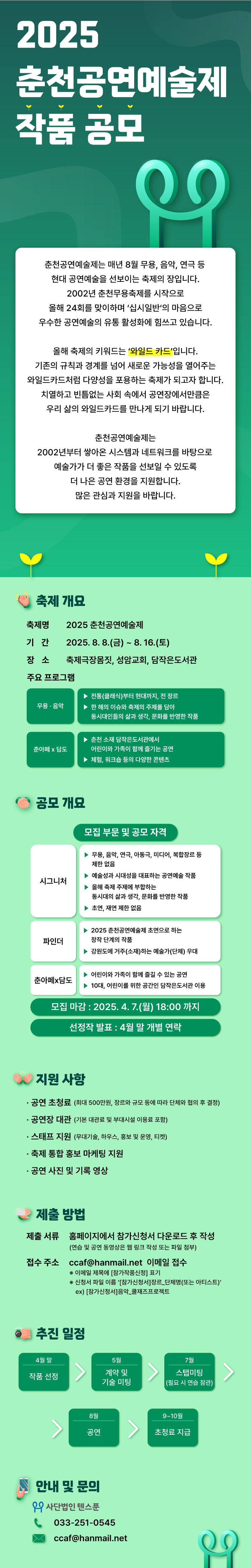 공연예술 아티스트 여러분의 많은 관심과 지원 바랍니다.